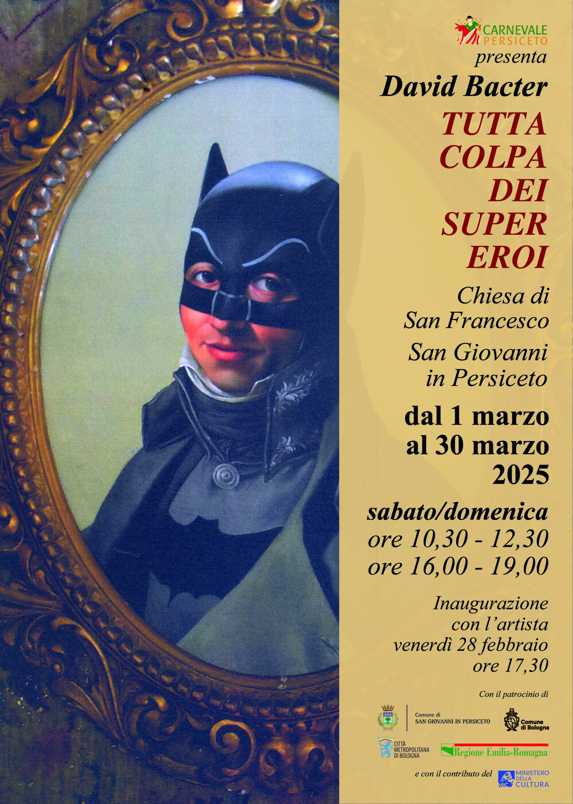 Non possiamo fare troppo anticipazioni, se non che i protagonisti della prossima mostra – che sarà curata da Lucia Mattioli, Pierpaolo Cenacchi e Matteo Serra, e che si terrà nella Chiesa di San Francesco in Piazza Carducci – saranno i super eroi (nella foto, un esempio di “Batman ottocentesco”), qui reinterpretati dal fumettista David Bacter. Non inganni il nome, perché David è italianissimo, e definirlo “fumettista” è riduttivo. Anche se la sua principale attività è quella di disegnatore di graphic novel, è spesso presente in mostre personali e gallerie d’arte, dove i suoi dipinti di sapore rinascimentale-gotico-supereroistico incantano e conquistano i visitatori a prima vista.